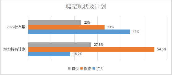 經(jīng)調(diào)研2023年有18.2%的企業(yè)有擴(kuò)大持有量,增加投資的意愿。27.3%減少,54.5%保持。