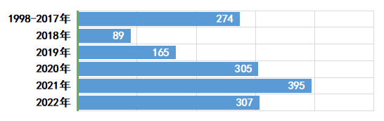 到2022年底,累計(jì)通過(guò)國(guó)家建筑工程監(jiān)督檢驗(yàn)中心檢測(cè)的整架檢測(cè)1535個(gè),其中2022年307個(gè),同比下降22.3%,其中鋁合金爬架達(dá)31個(gè)。