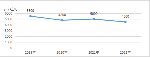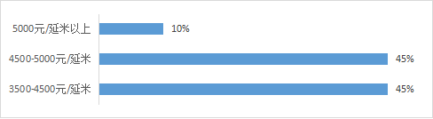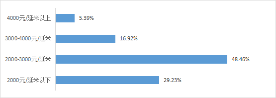 企業(yè)租賃價(jià)格(半年起租,不含勞務(wù))在小于2000元/延米占29.23%,2000-3000元/延米區(qū)間占48.46%,3000-4000元/延米區(qū)間占16.92%,大于4000元/延米占5.39%。(租賃價(jià)格的大幅下降,主要是受疫情停工影響)